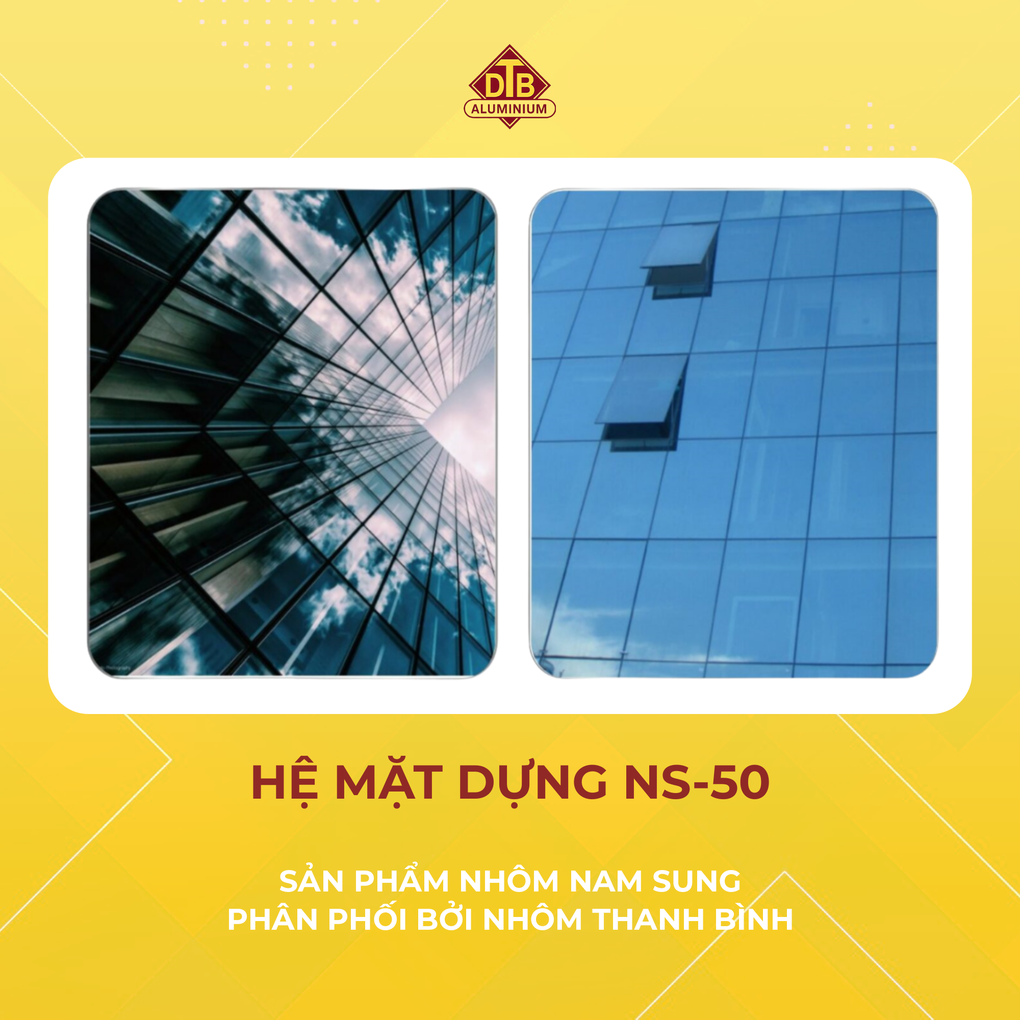 Hệ mặt dựng NS-50 hay còn gọi là NS-1600, là dạng mặt dựng được sử dụng phổ biến và có mặt rất sớm trên thị trường, được lắp ghép theo hệ mặt dựng Stick.Các thanh đứng và thanh ngang của hệ mặt dựng có độ dày từ 1,8-2mm tùy thuộc vào nhu cầu sử dụng.
